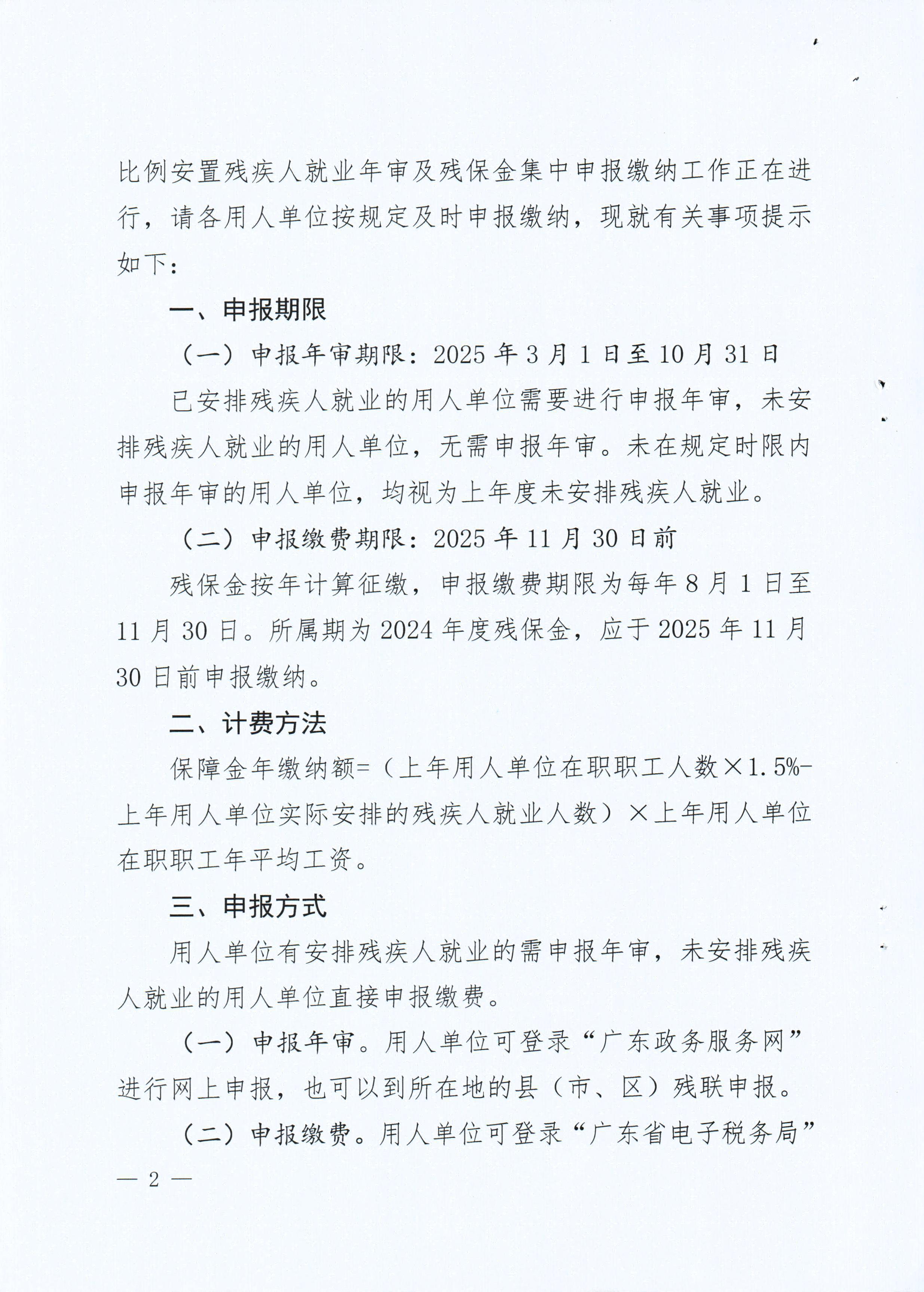 关于开展2025年残疾人就业保障金年审及征收工作的通知