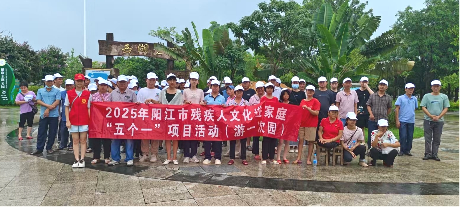 近日,市残联在阳西县成功举办2025年度文化进残疾人家庭“五个一”活动。通过“游一次园、参观一次展览、看一场电影、读一本书、参加一次文化活动”等形式,让残疾人感受文化魅力,增强生活信心,丰富残疾人精神文化生活。市县两级残联有关工作人员、残疾人及亲友、志愿者等200余人参与。