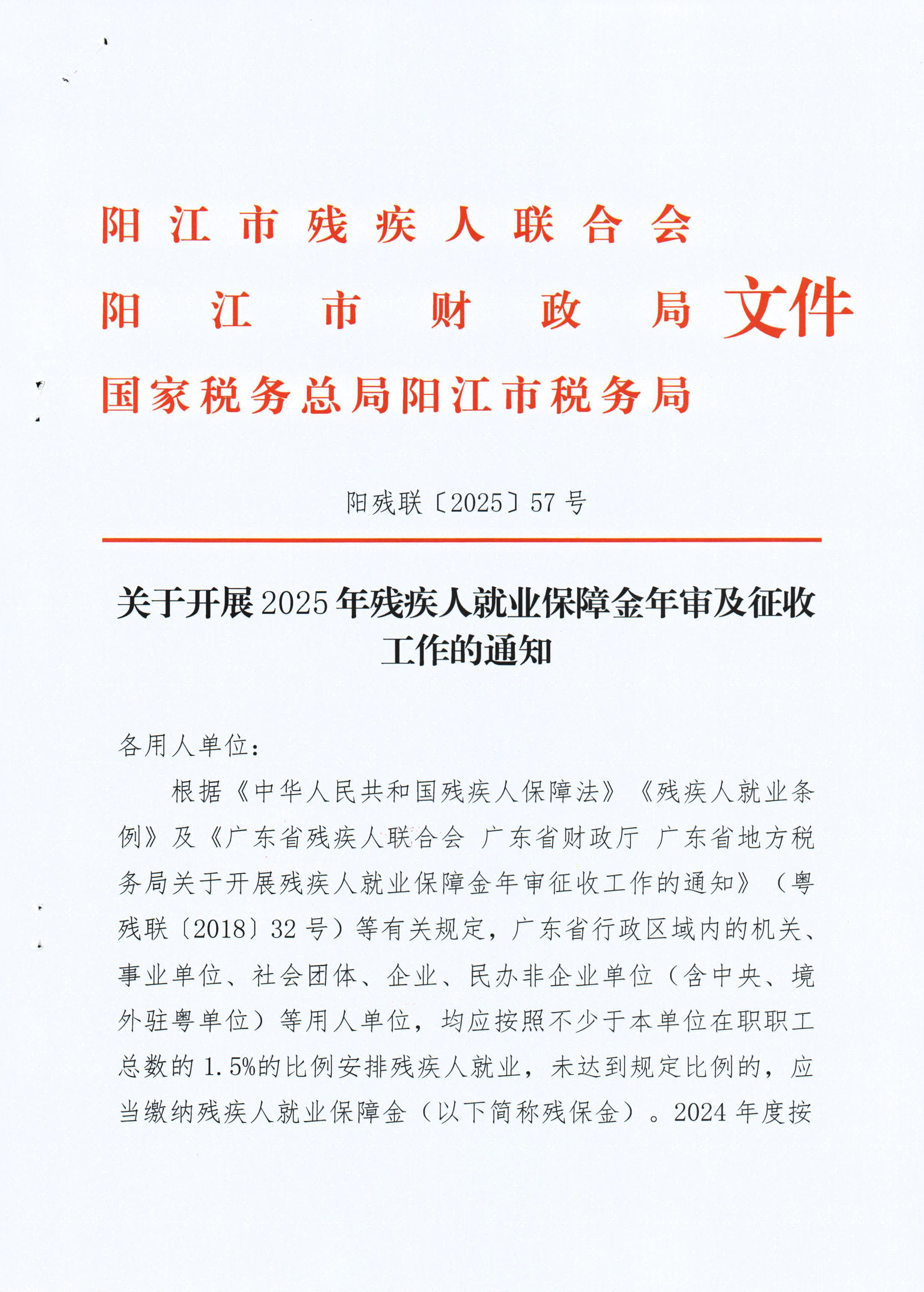 关于开展2025年残疾人就业保障金年审及征收工作的通知