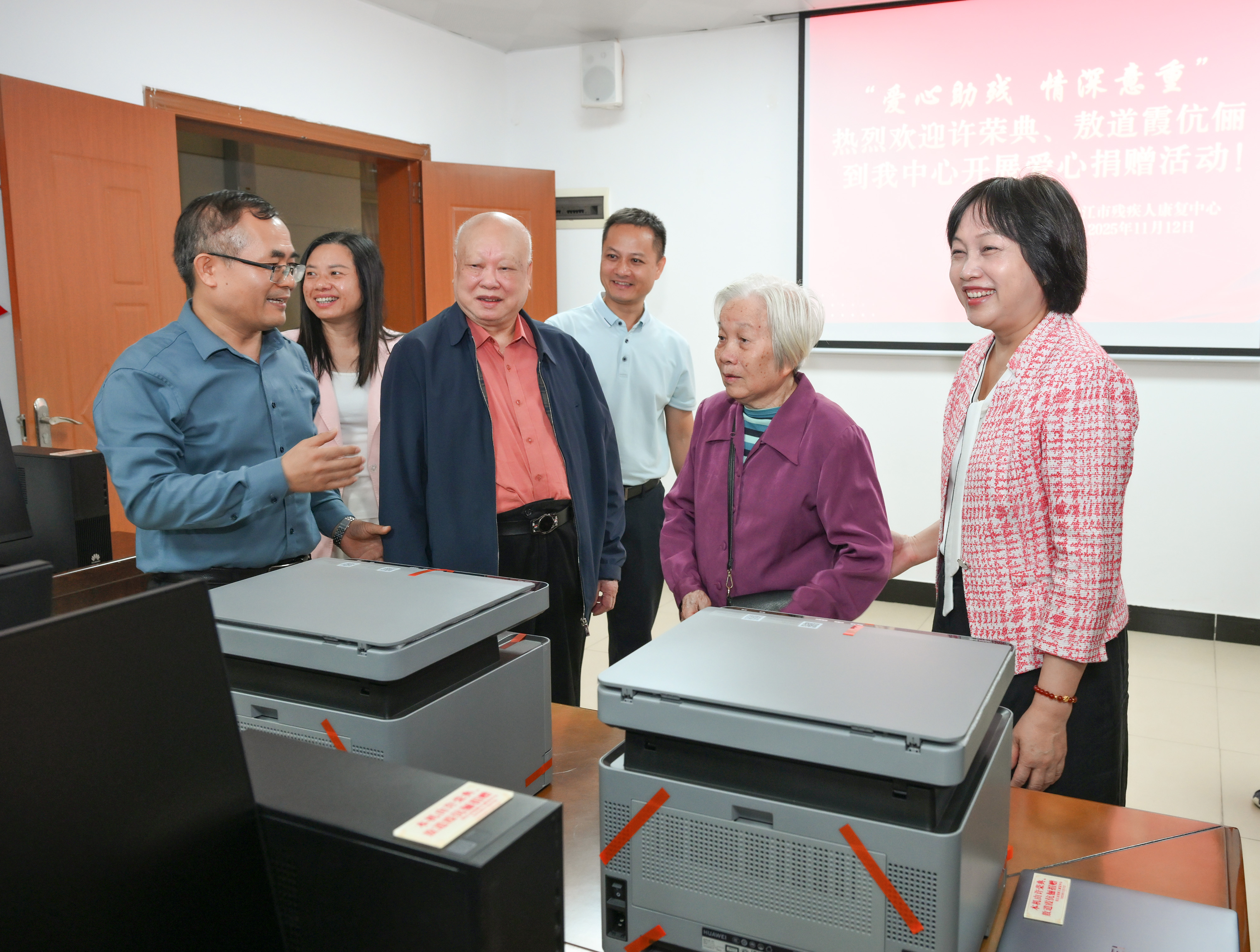 11月12日下午,“爱心助残 情深意重”许荣典、敖道霞爱心捐赠活动在市残疾人康复中心举行。退休党员许荣典、敖道霞伉俪向市残疾人康复中心捐赠价值23.8万元的教学及办公设备,用于提升残疾人教学康复装备水平,支持中心教师探索现代化的教学方法,传递社会对残疾孩子的关爱。