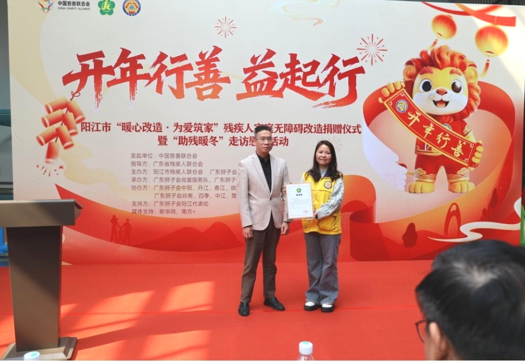 市残联党组书记、理事长莫洁兰向广东狮子会及各服务队的慷慨捐赠和辛勤付出致以衷心感谢。她表示,本次“暖心改造·为爱筑家”项目切实为11户残疾人家庭解决了“出行难”“如厕难”等实际困难,让残疾人朋友生活得更便捷、更有尊严。她表示,近三年来,广东狮子会阳江代表处承接实施了一批深受群众好评的助残项目,在漠阳大地赢得了良好口碑,成为社会力量参与残疾人事业的重要典范。