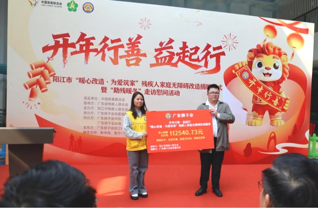 2月12日,阳江市“暖心改造·为爱筑家”残疾人家庭无障碍改造捐赠仪式暨“助残暖冬”走访慰问活动在市残疾人康复中心举行。活动共筹集资金11.25万元,为11户残疾人家庭实施无障碍改造;另捐赠3.4万元,慰问困难重度残疾人家庭45户、双百社工39名。